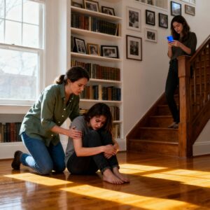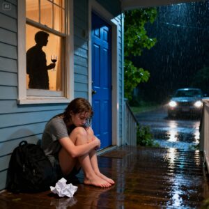 A chuva caía em torrentes implacáveis, transformando a rua suburbana num borrão de cinza e asfalto. Emily Carter, de onze anos, estava parada…