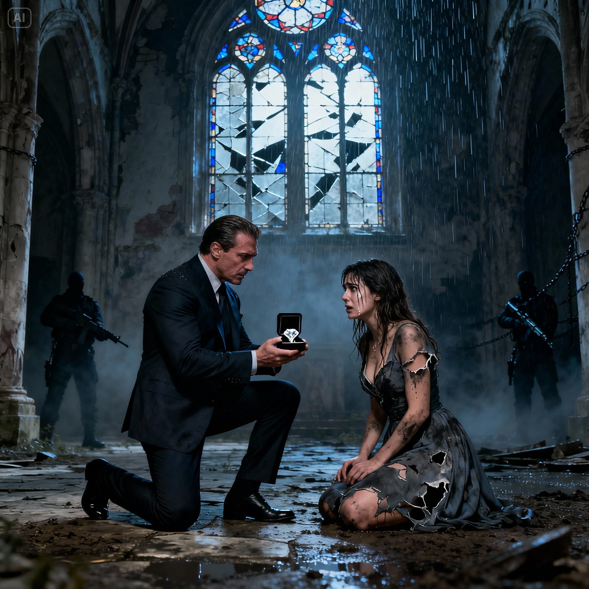 Mas então, para o choque de todos — incluindo seus próprios soldados — Luca não sacou uma arma. Ele deslizou a mão no bolso interno de seu casaco e tirou uma pequena caixa de veludo preto. Com um movimento do polegar, ele a abriu. Dentro, um anel de diamante brilhava cruelmente à luz fraca.