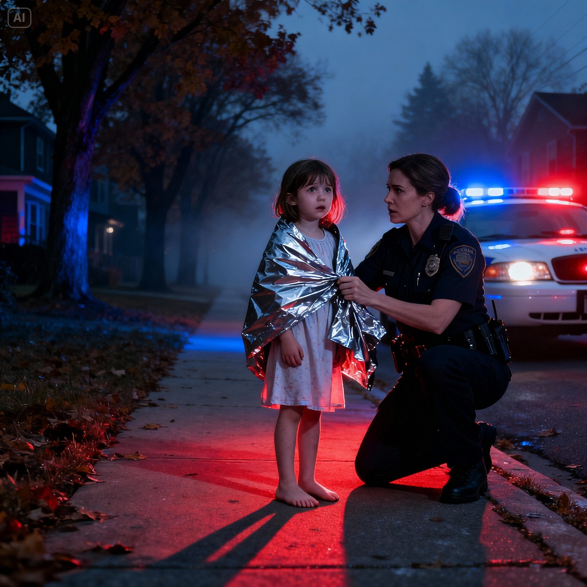 Sarah se aproximou pelo outro lado, pegando um cobertor de emergência do banco de trás. “Meu nome é Sarah, este é o David. Somos policiais. Estamos aqui para ajudar.” Ela envolveu o cobertor nos ombros pequenos e trêmulos da menina. “Qual é o seu nome, querida?”