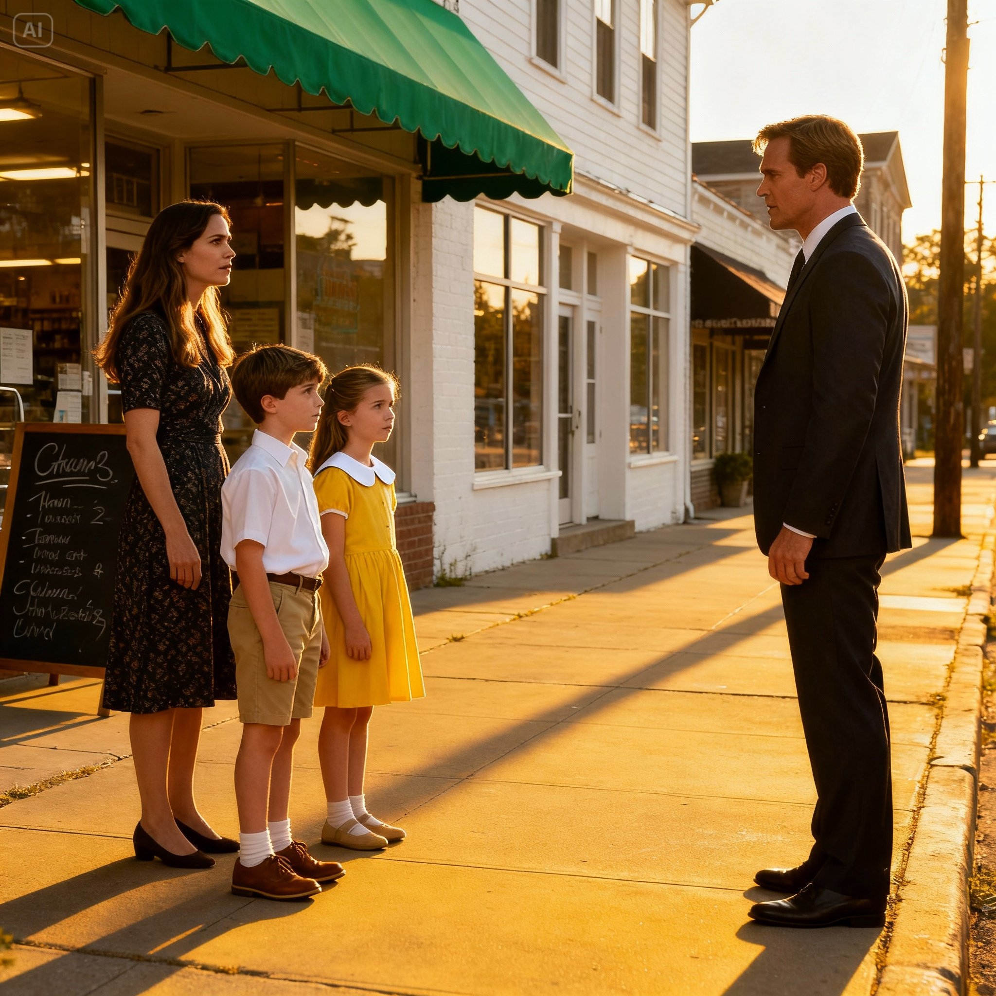 “Estarei no ‘The Corner Brew’ em trinta minutos”, disse ela rigidamente, antes de se virar para os filhos, forçando um sorriso que não alcançou seus olhos.