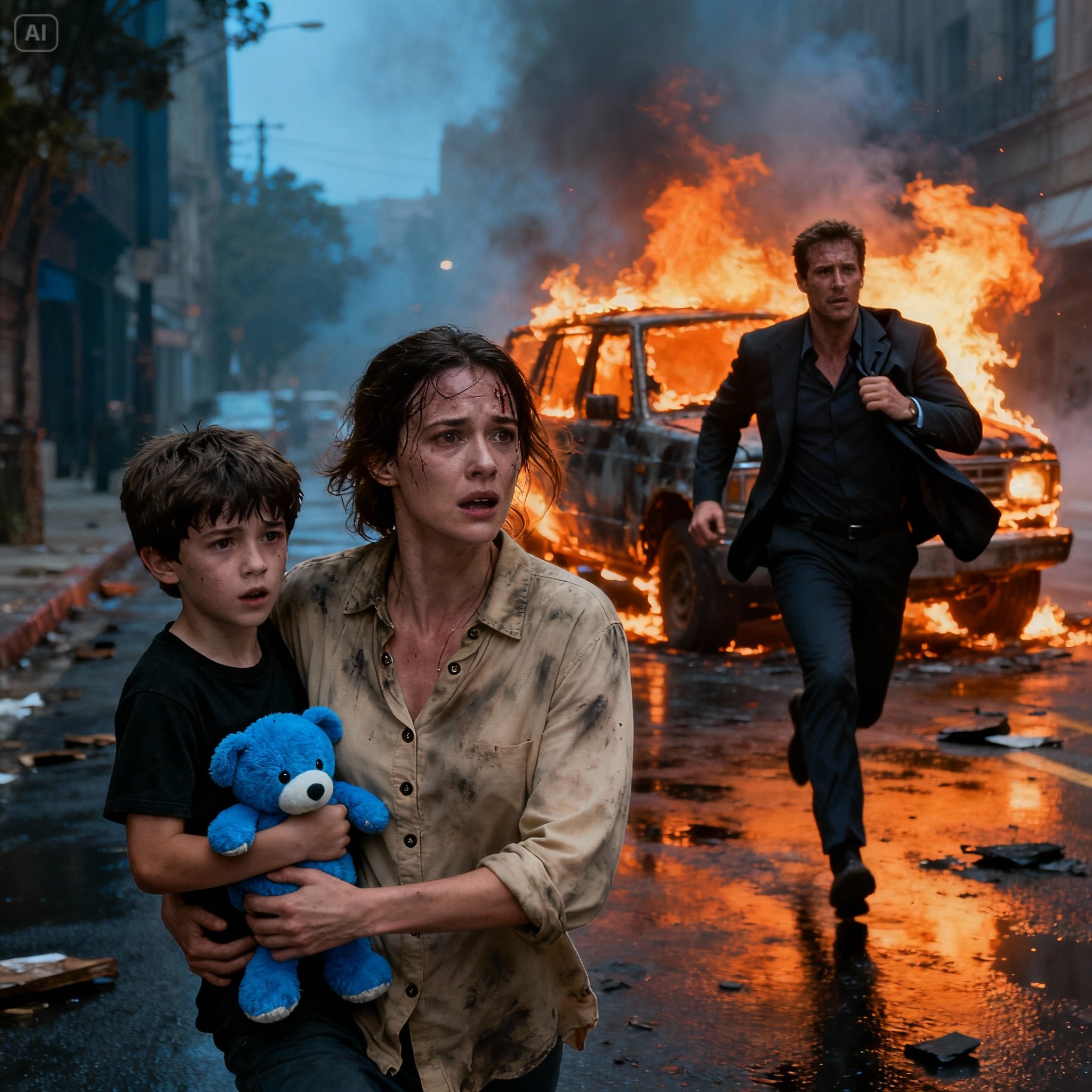 Sair foi mais difícil do que entrar. As chamas haviam se espalhado, bloqueando o caminho original. A mente de Sarah disparou. Havia uma escada dos fundos, raramente usada, cheia de caixas e móveis velhos. Era a única chance deles. Ela carregou Emma através da fumaça, sentindo o calor queimar seus braços e costas. O coelho de pelúcia caiu das mãos de Emma, mas não havia como voltar.