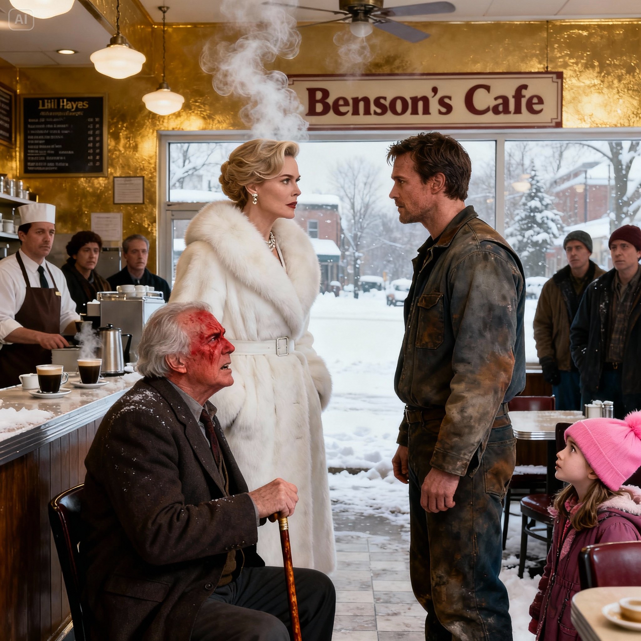 A porta do café de repente se abriu. O vento uivou quando uma mulher em um casaco de pele branco entrou, seus saltos batendo fortemente contra o chão. Todas as cabeças se viraram. Era Margaret Hayes. Todos sabiam quem ela era. A CEO bilionária da Hayes Global, uma empresa que praticamente possuía metade da cidade. Ela não apenas entrou.