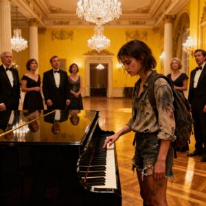 Uma menina faminta de 12 anos perguntou: “Posso tocar em troca de comida?” O que aconteceu quando ela tocou no piano deixou todos os milionários presentes perplexos…